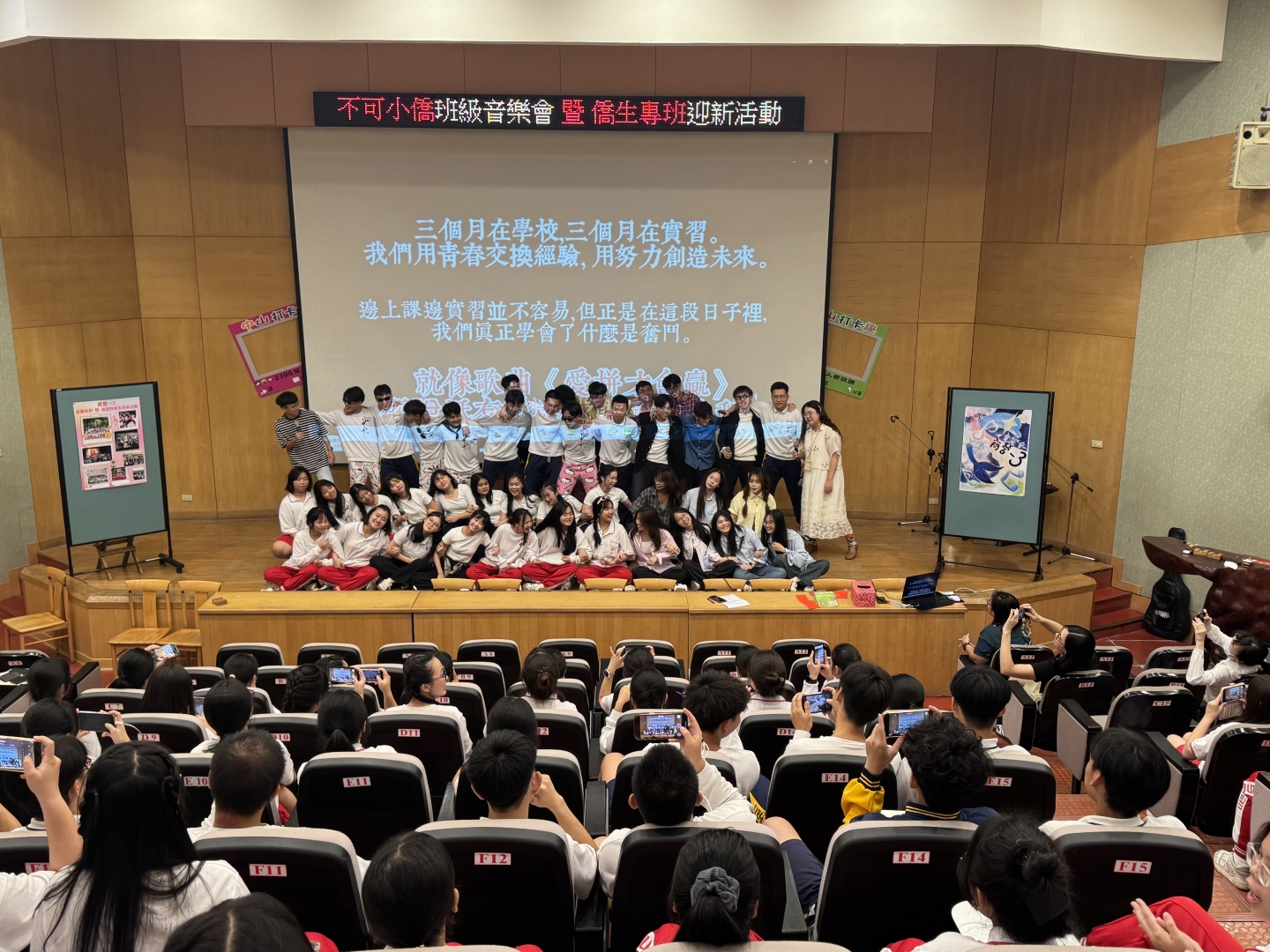 副校長廖家新指出,各科學長姊為了歡迎新生,設計許多精彩表演,商業經營科舉辦音樂會,並獻唱台語經典名曲〈愛拚才會贏〉。餐飲科除呈現各國傳統舞蹈與歌曲表演,並安排圍爐火鍋體驗,讓大家感受台灣特有的火鍋文化。