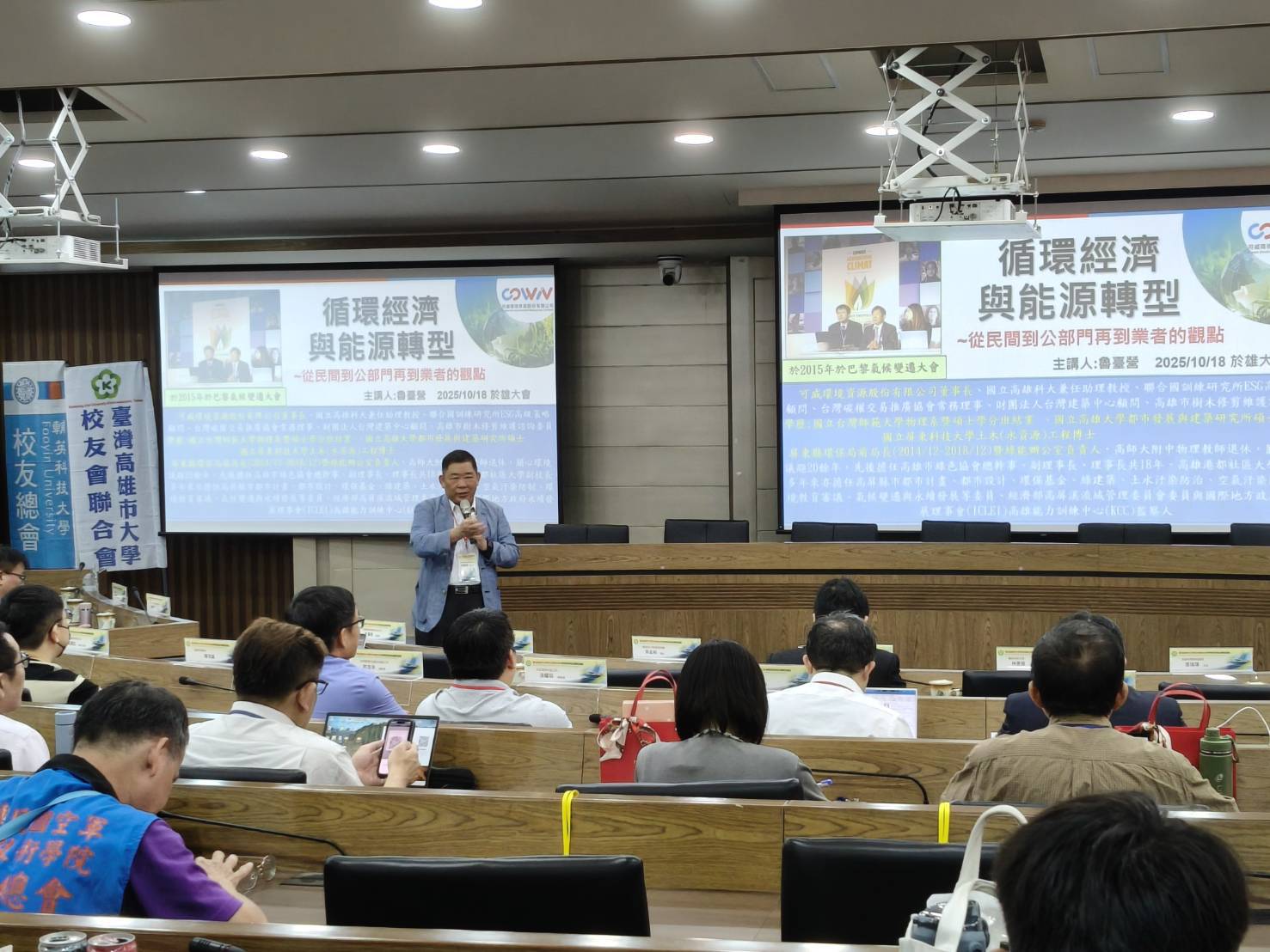 可威環境資源公司魯臺營董事長以「循環經濟與能源轉型」為題演講。
