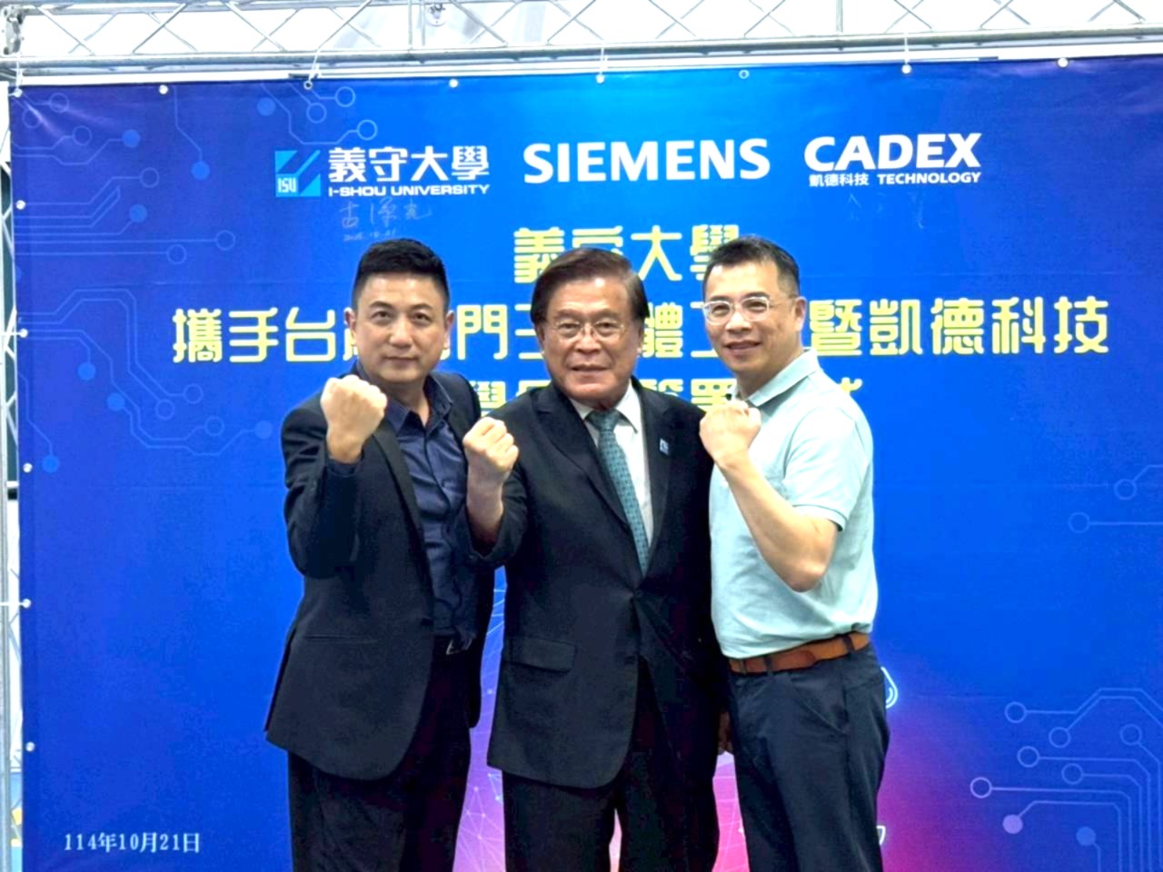 迎接全球智慧製造與AI革新的新浪潮,義守大學再度展開產學鏈結新篇章,今日(10/21)與台灣西門子軟體工業股份有限公司(以下簡稱台灣西門子軟體工業)及凱德科技股份有限公司(以下簡稱凱德科技)正式與簽署產學合作備忘錄。