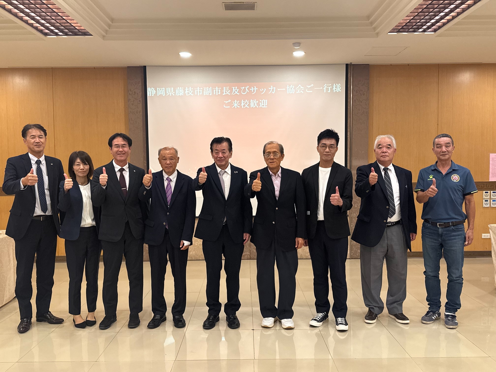 李昱平指出,日本代表團除河野一行副市長還包括藤枝市足球協會會長岸登志滿、副會長熊谷哲典以及多位市政府與企業代表,參訪團並參觀餐飲專業教室與運動訓練表現中心,印象深刻。