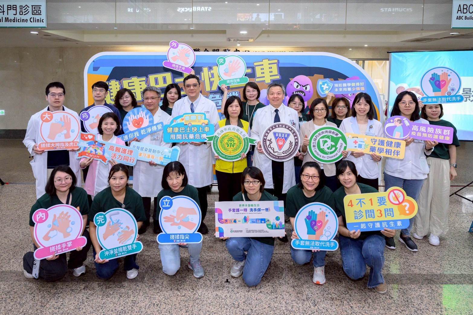 高雄醫學大學附設中和紀念醫院(以下簡稱高醫)(27)日響應「世界抗生素週」,舉辦「健康巴士快上車,甩開抗藥性危機」展覽,並邀請到衛生福利部疾病管制署、高雄市政府衛生局一同共襄盛舉,呼籲民眾不只要正確用藥,更要從預防做起,降低感染與用藥需求,守護醫療資源,共創永續健康台灣。