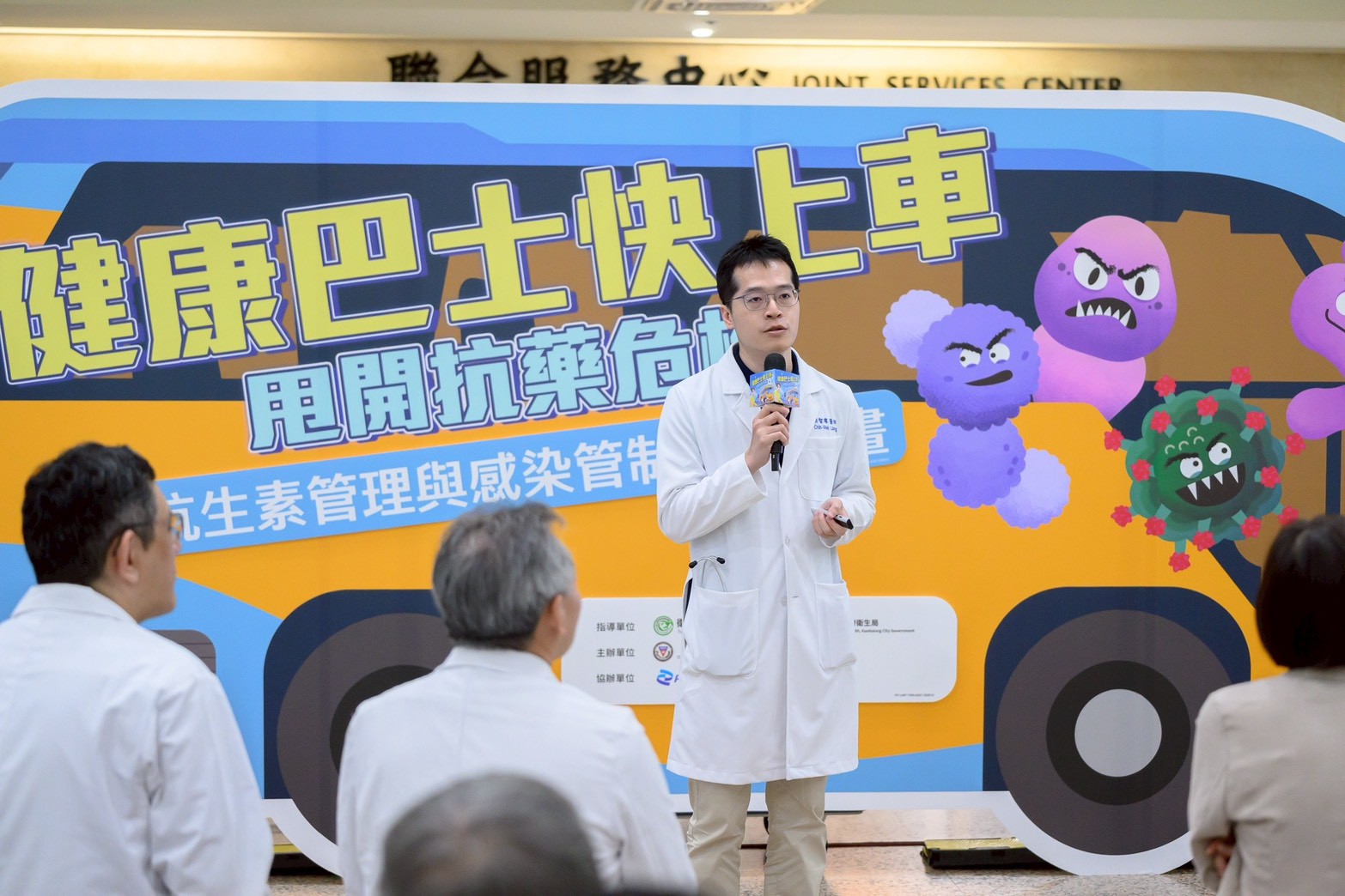 「對抗抗藥性蔓延已刻不容緩。」高醫戴嘉言副院長指出,隨著台灣將邁入超高齡社會、醫療量能持續緊繃,抗藥性問題更加嚴峻。今年高醫響應 WHO 世界抗生素週主題「立即行動、守護當下、保障未來」,即日起一連五天展開「健康巴士快上車,甩開抗藥危機」展覽,以寓教於樂方式提升大眾對「正確用藥」與「預防感染」的認識。他也承諾,無論是疫情或抗藥性挑戰,高醫身為大學附設醫院及醫學中心,秉持教學、服務、研究的理念,將持續站在醫療前線,推動抗生素監控與衛教,守護永續醫療。