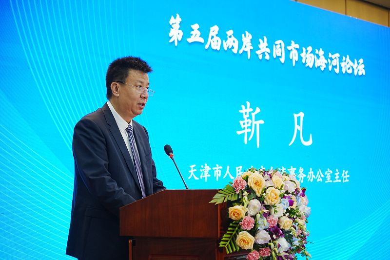 天津市台辦主任靳凡致詞表示,兩岸共同市場論壇在天津舉辦第五屆,已成為兩岸學術翹楚互鑒智慧,行業精英碰撞思想,企業家們共商合作的重要平台。從產業鏈供應鏈融合,到生物醫藥產業互補,從文旅產業到現代農業協作。