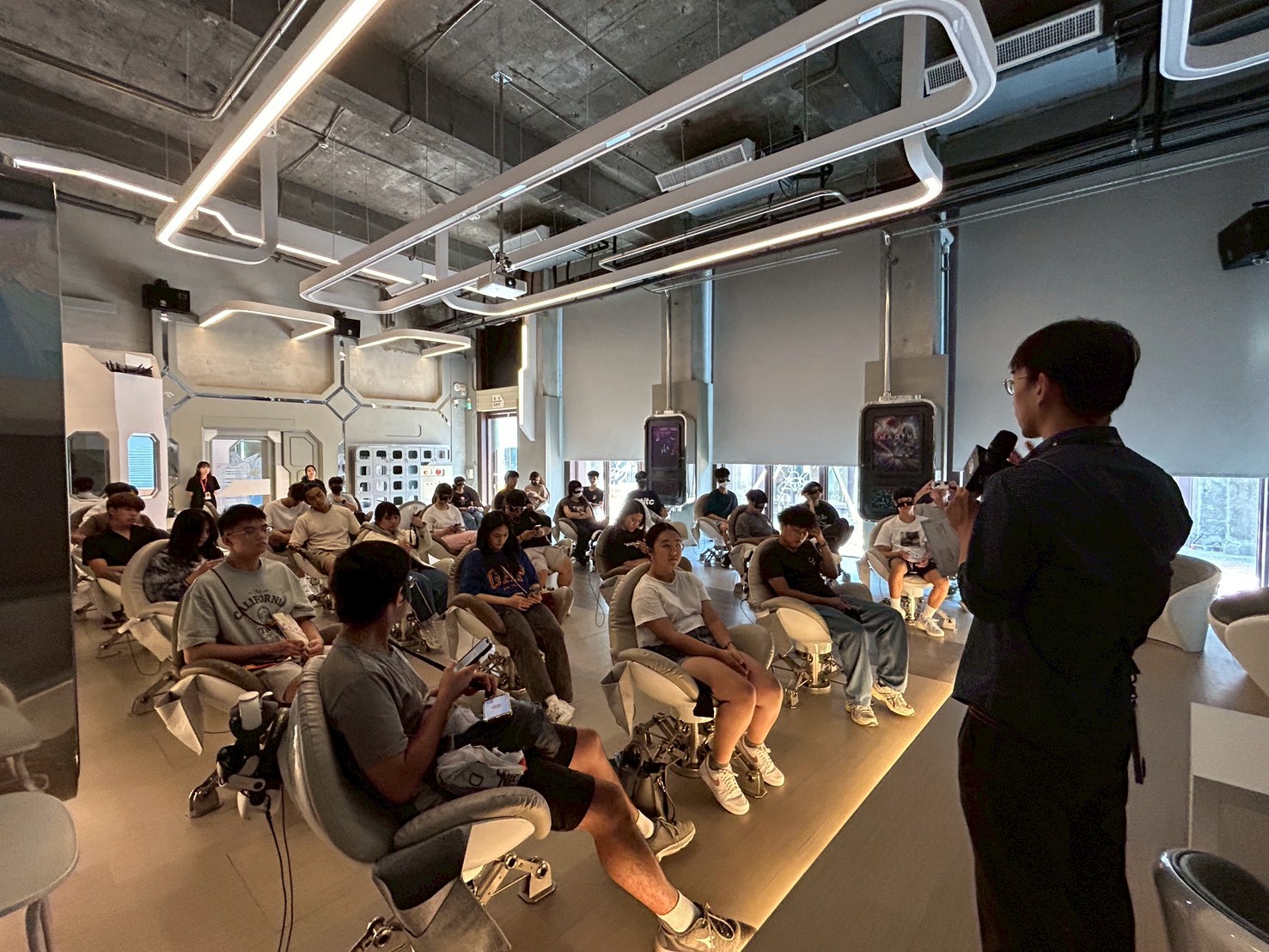 「學習不該只在教室裡發生!」傳設學院秉持「學習無所不在、生活即教室」的理念,積極參與校內「Xplorer探索者計畫」,打造融合藝術與科技的行動課程。10月13日,學生走訪駁二藝術特區的「XR DREAMLAND」,在全國首座8K立體影像VR劇院中,親眼見證沉浸式影像的震撼。課程中,學生欣賞了挑戰感官極限的《寂靜》、描繪水下人際互動的《舞池漫波》,以及以「網路斷線焦慮」為主題的《想嚮》,體驗科技藝術的敘事與互動設計魅力。