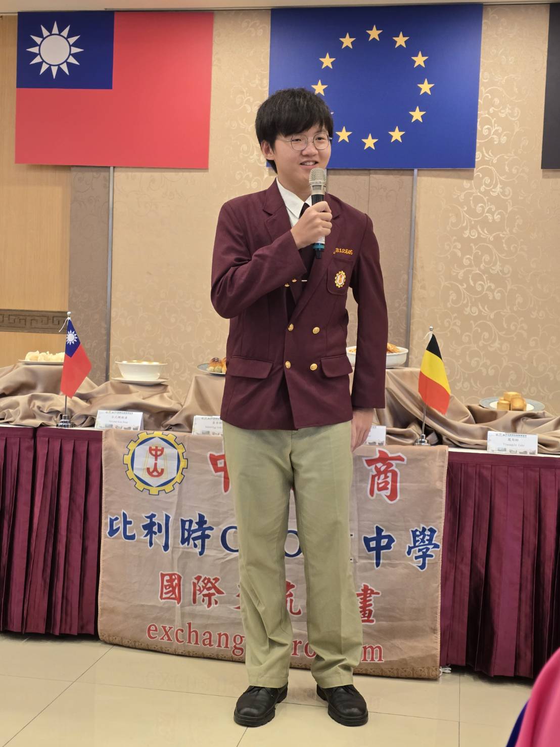 COOVI 中學師長 Olivier Dumoulin 致詞,並介紹師生特別製作有濃郁風味及獨特口感的比利時鬆餅。隨後COOVI 學生分四組發表學習成果,包括麵線糊、蔥油餅、鮮蝦餃、酸辣湯、芋粿巧、土魠魚羹,以及珍珠奶茶與鳳梨酥等台灣經典味道。