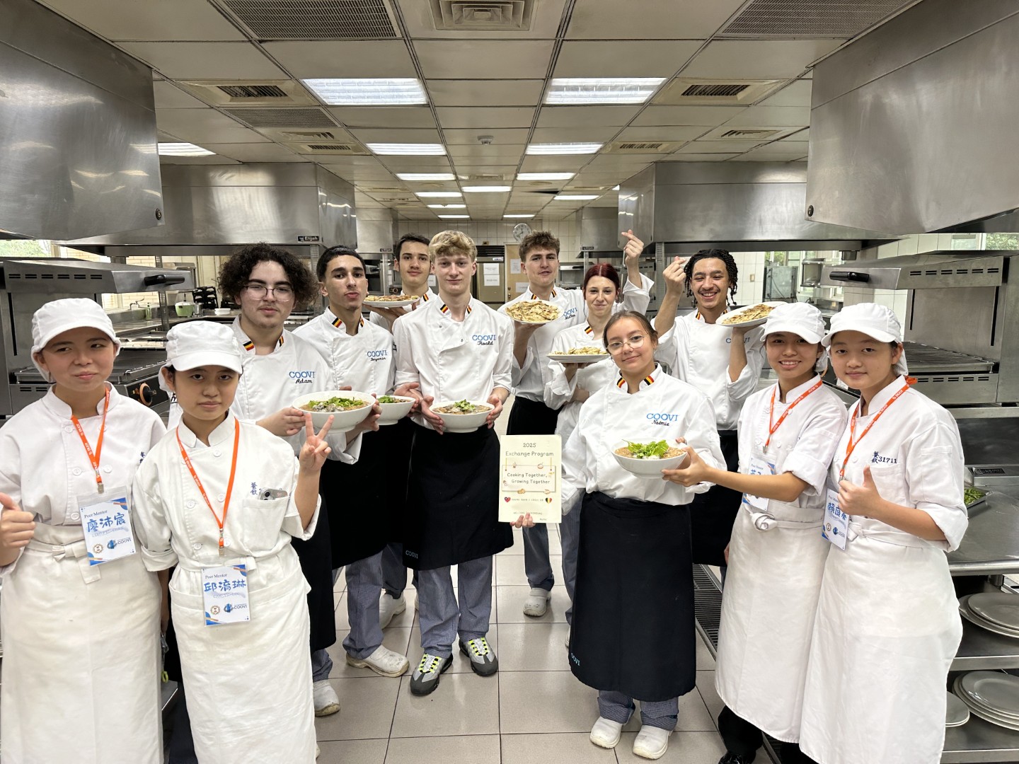 【記者陳明成高雄報導】高雄市中山工商與比利時 COOVI 中學進行兩週的國際教育交流課程,21日劃下完美句點,離臺行前校方舉辦成果發表暨感恩歡送餐會,COOVI 學生發表手作台式經典料理與甜點;校方端出道地中式料理與異國風味餐點宴客,展現餐飲科師生的專業與誠意,離情中帶著濃濃的不捨。