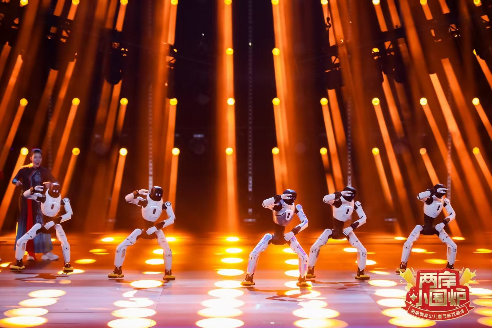 機器人“AI海”作為“兩岸小圍爐”舞臺上首次使用的機器人主持人,與真人主持人阿海、小主持人組成跨次元主持團,其機智的臨場反應,展現了科技在文化藝術領域的創新應用。機器人團隊在節目表演方面同樣在行,在《“械”手共“武”》中,機器人臂膊舒展、動作連貫,與太極拳世界冠軍莊瑩瑩配合完成全套太極動作;而在歌舞《圍爐祈願》中,機器人更突破性地參與rap說唱表演,將電子節奏創新融合;在鬥舞環節,機器人團隊通過充滿節奏感的街舞表演,將現場氣氛帶到高潮。