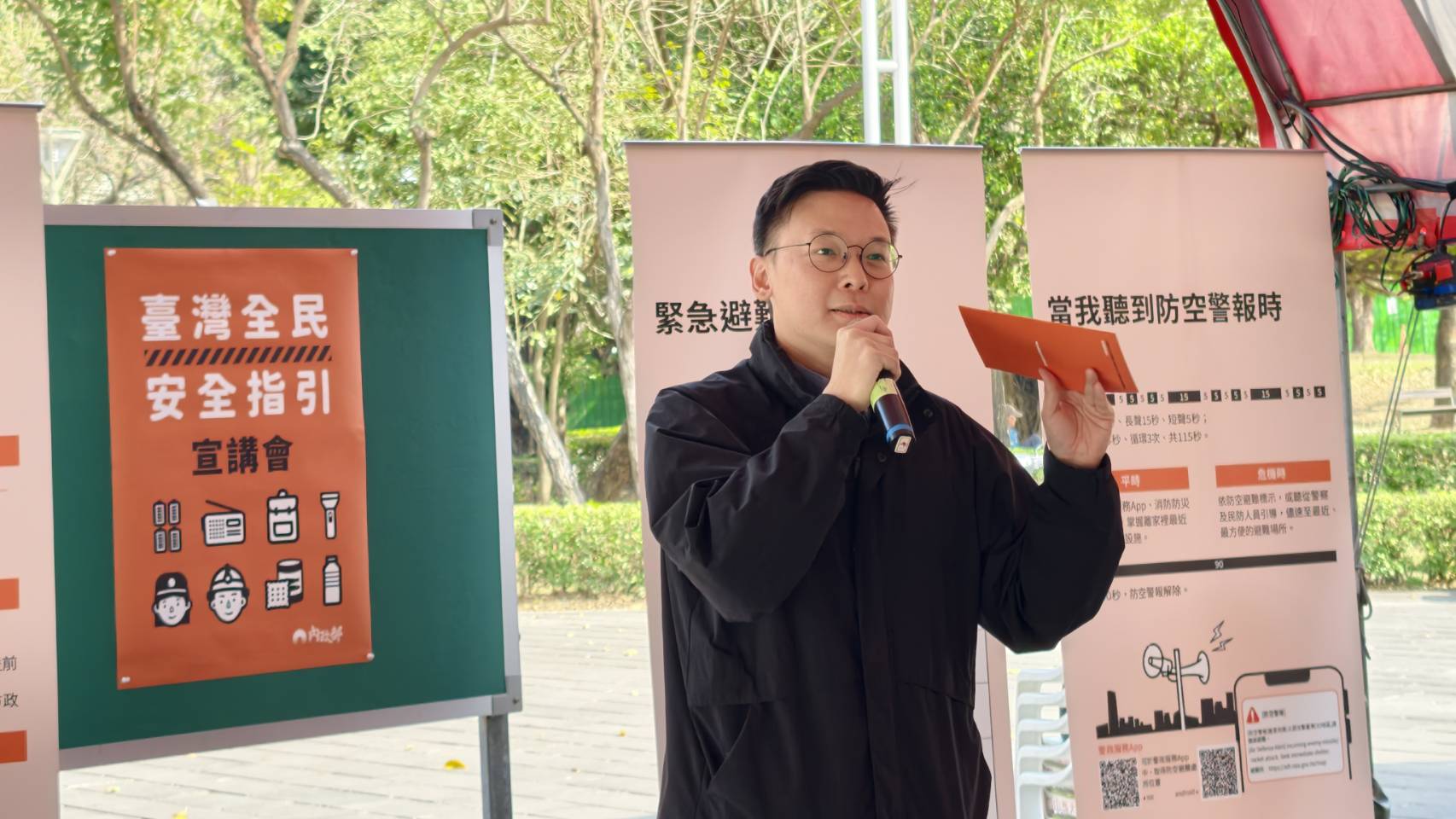 國家安全會議副秘書長林飛帆宣講時指出,「臺灣全民安全指引」(小橘書)的推動正是建構全社會防衛韌性的重要基礎。林飛帆強調,「小橘書」的核心在於「有準備,更安全」,這是一本備災的「不戰爭」手冊,當民眾依照指引準備物資、參加防災與急救課程,整體社會韌性提升,反而能達到嚇阻衝突、避免戰爭的目標。林飛帆呼籲民眾務必備妥防災避難包,無論颱風、地震或極端災害都用得上,並將「小橘書」放在家中隨手可得之處,有備無患方能臨危不亂。