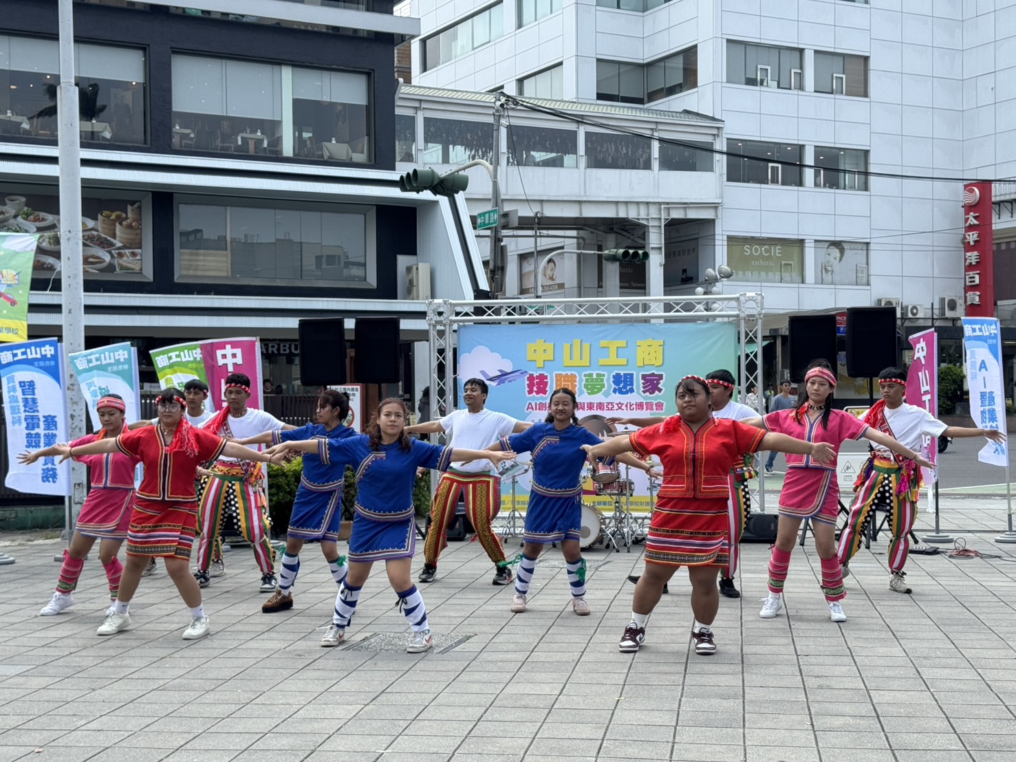【本報記者陳明成高雄報導】高雄市中山工商14日在屏東公園椰林大道舉行盛大的2026「技職夢想家—AI創意教學與東南亞文化博覽會」,現場熱鬧滾滾,16十六個科二十個攤位結合AI科技、手作實作、美食試吃、異國文化等展現各科特色,並安排精彩社團表演與豐富摸彩活動,鼎泰豐實習學生演示小籠包「黃金十八摺」神技,整場活動兼具教育性與娛樂性,宛如嘉年華會,吸引滿滿人潮。