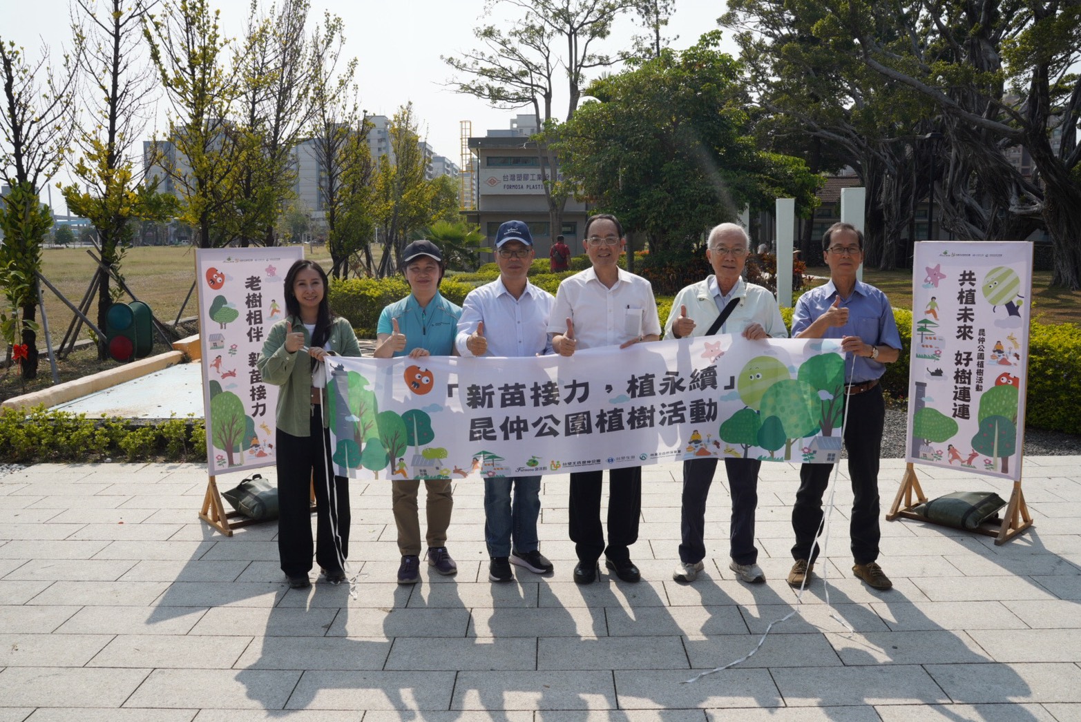 昆仲公園前身為台塑企業起家厝,承載台灣塑膠產業發展的重要記憶。園區內多株老樹自建廠初期即扎根至今,見證時代變遷。然而,近年受風災影響,部分樹木受損,園區也迎來生態更新的重要轉折。此次植樹活動象徵世代交替,在老樹守護下種下新苗,延續場域記憶與綠意生命。