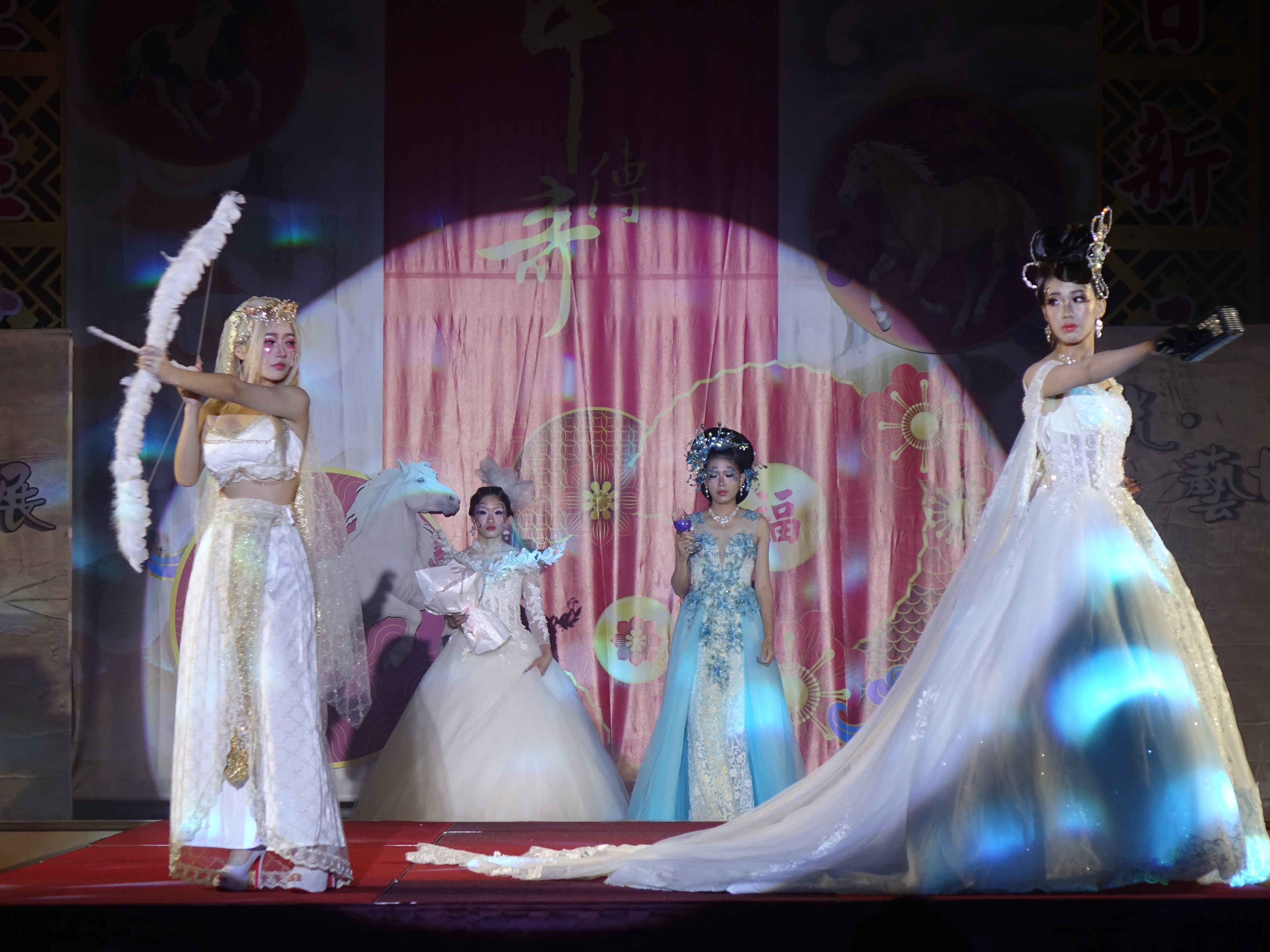 成果展於六和敬大禮堂一連舉行兩天,舞台走秀由主題走秀揭開序幕,包括「花境流光」、「青花雅韻」、「光舞純白」、「星願之舞」、「霓光」及「迴-藝」,從自然花藝、東方青花瓷意象,到星座元素與未來霓光,再到東西文化交融,透過服裝設計、彩妝與整體造型,呈現學生豐沛的創意能量與藝術能力;最後由僑生擔綱「街頭風造型」的舞蹈表演,展現多元族群特色與青春活力,精彩表演贏得滿堂彩。