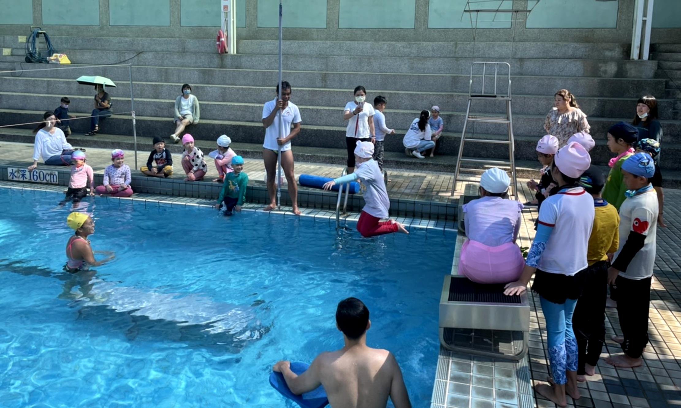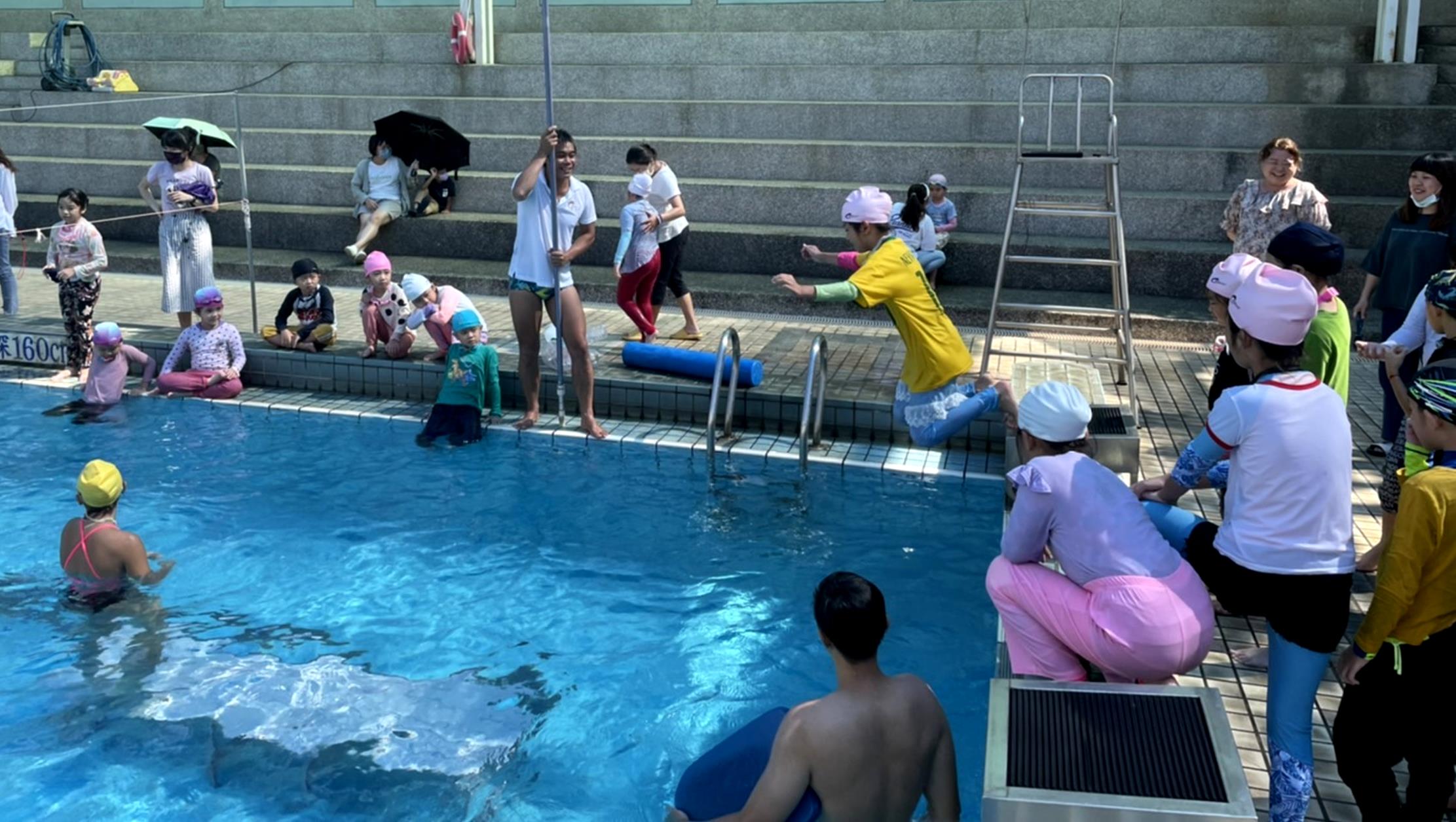 大寮運動中心於27日舉辦「水上安全暨游泳能力認證營」,有註冊該中心票卡app的民眾即能免費報名參加,吸引近40名國小及國中學生集聚於輔英科技大學游泳池。上午展開教育部的游泳能力認證,分級為5級,從海馬級、水獺級、海龜級、海豚級,一直到最厲害的旗魚級。