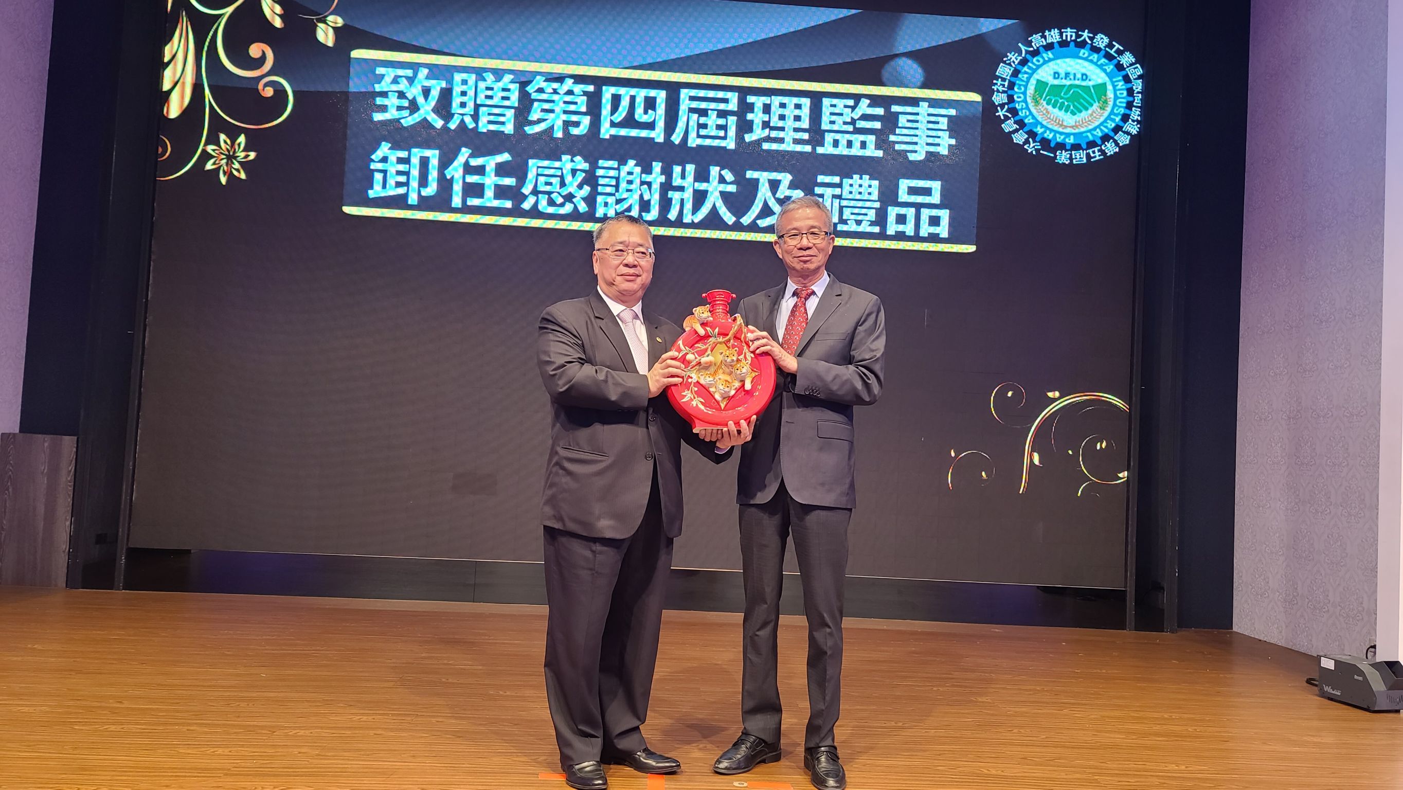 林宗志表示,感謝六年來,全體理監事團隊全心無私奉獻,協助廠協會共同完成多項不可能的工作與任務。回顧六年來華中路及光華路部分路段交由公路總局維養、爭取工業局經費改善全區排水溝增加洩水孔、全區路燈地下纜線汰換工程…等等。尤其是特別感謝理監事團隊及廠商認養全區行道樹1500餘顆,今年堂堂進入第二期。大發工業區華中路與光華路為大發工業區聯外重要道路,長期因重車輾壓道路品質不佳,造成用路人不便,本案於110年12月底前完成路基改善工程,大幅提昇用路品質。工業區長期供水不足問題也爭取中央經費興業路管線汰換工程、光明路新設供水管線工程、鳳山廠至鳳林路汰換管線工程等解決工業區內用水需求。未來新任劉正光理事長有豐富協會經驗、服務熱誠一定會持續推動廠協會會務更上一層樓。最後深深一鞠躬感謝大家的支持與愛護。