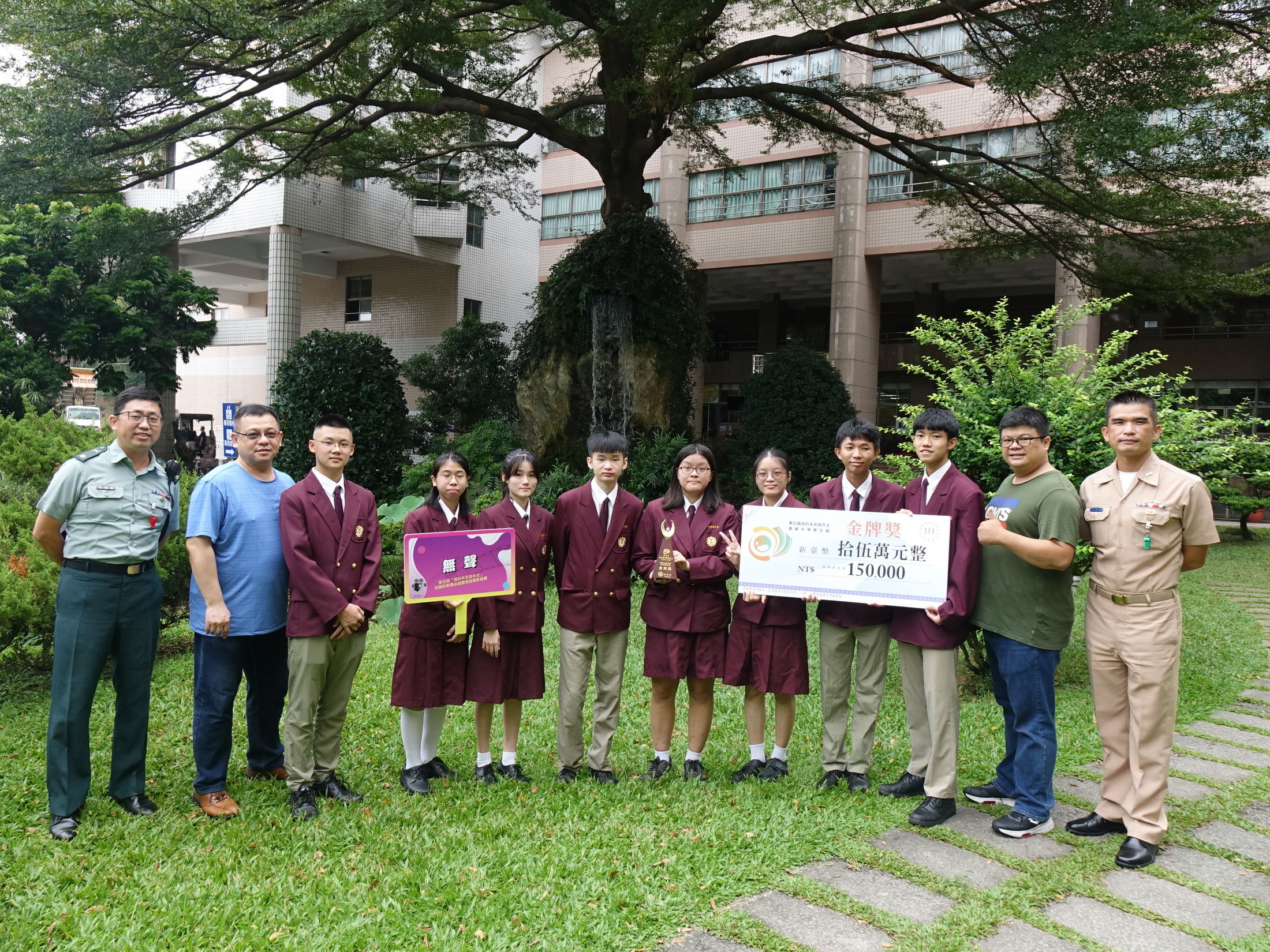 林昭億說,團隊成員包括多媒體技術科許仁安、黃家萱、蔡寰葦、陶瑋葶、蘇郁婕和何家榛及電機科傅煥鈞等七位學生。拍攝計畫由鄧正樸老師主導,學校教官、相關科老師全力配合,眾志成城,終於擊敗群雄,勇奪金牌。