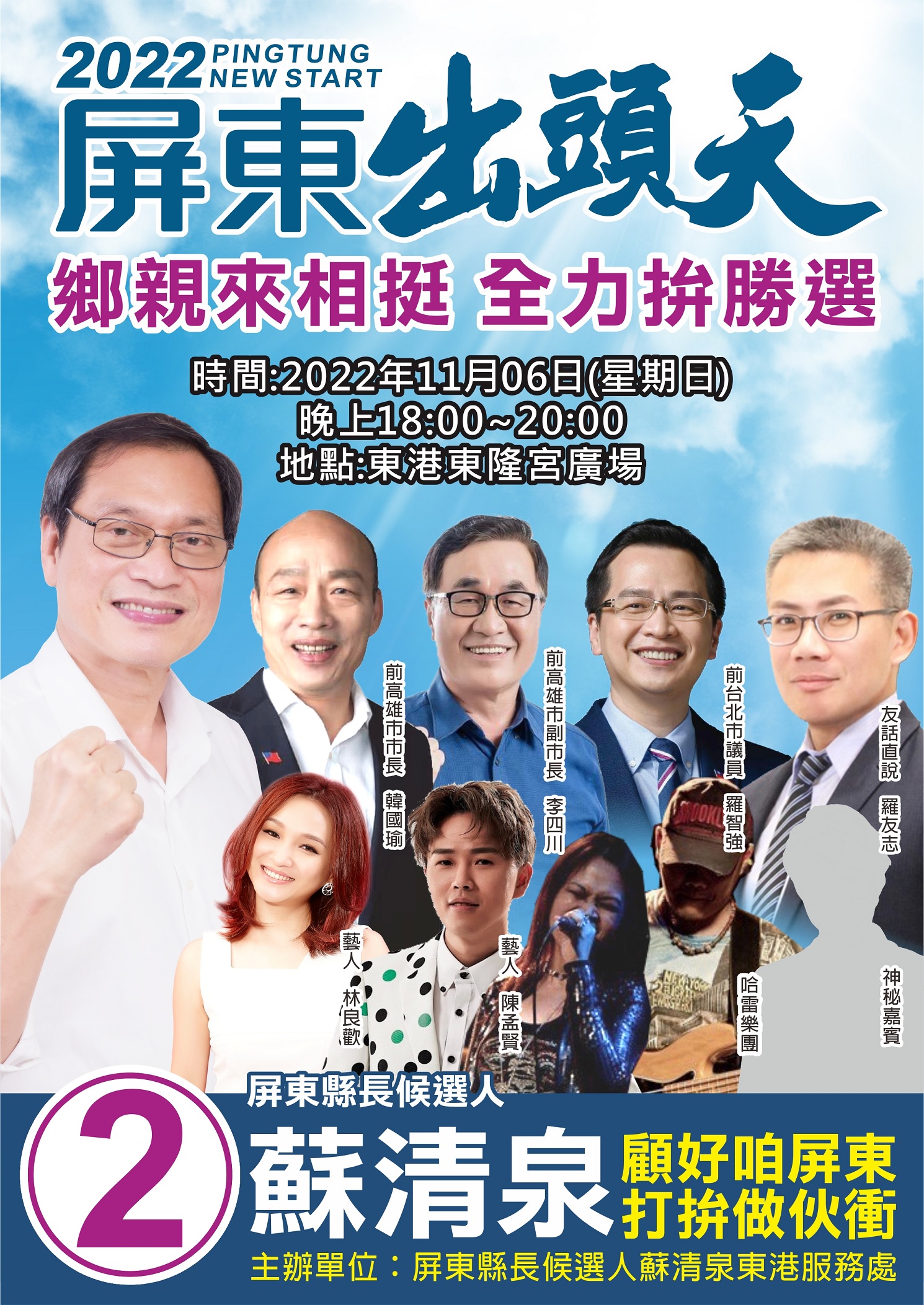 所以11月26日的縣市長選舉,人民投票的結果,一定會影響2024年的總統大選,而屏東縣則是此次選舉的重中之重。藍軍若能得屏東,則得天下,所以藍軍應盡速集結重兵,準備在屏東實施反攻的登陸戰!