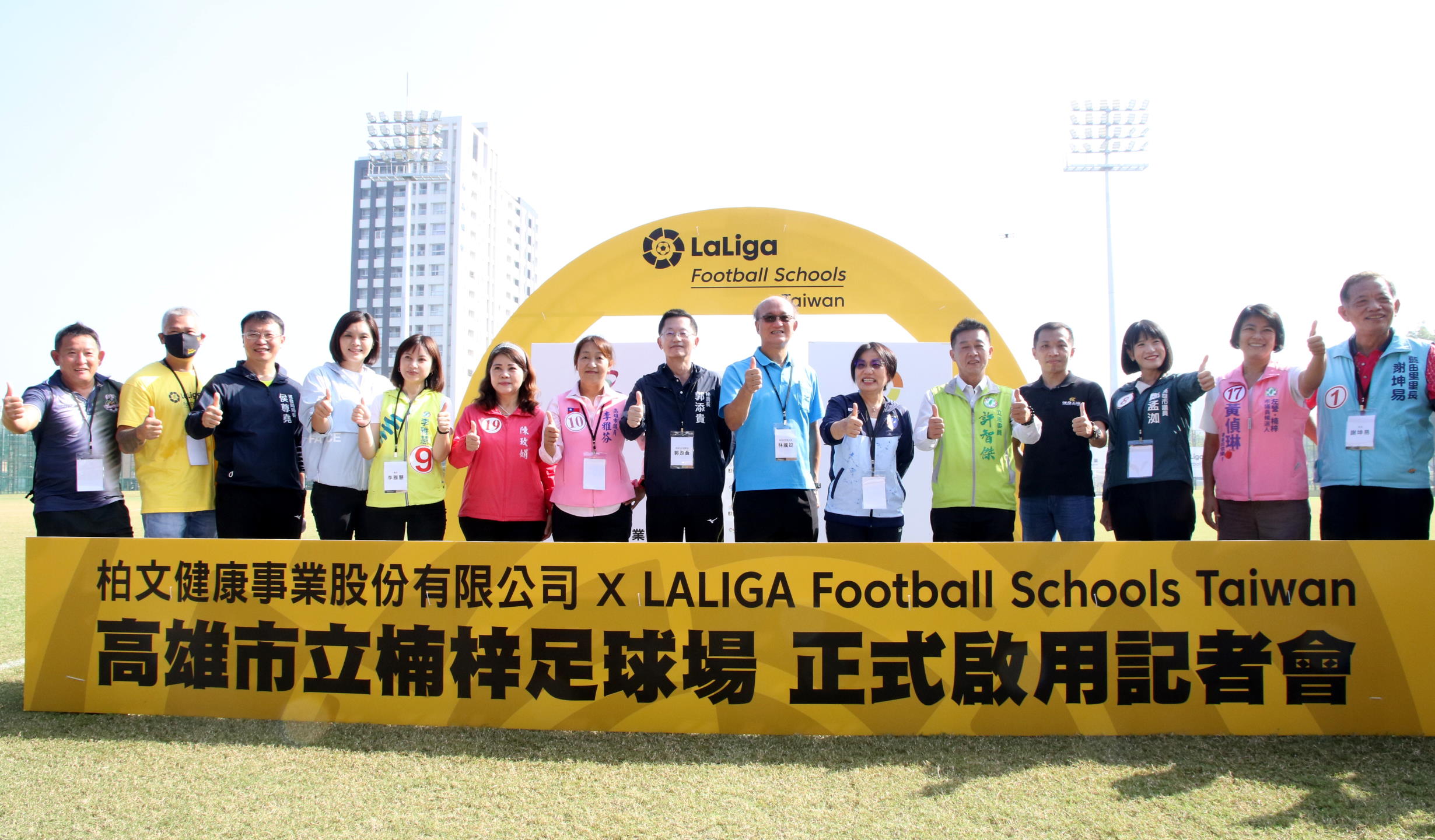 劉世芳立委與許智傑立委表示中央與地方共同促成興建楠梓足球場,期許該場地加強推廣足球運動。柏文健康事業公司林洵賢副總經理表示,柏文與國際三大足球聯盟中的西甲合作,引進西甲名門的青訓系統教學課程,LaLiga Football School有別於體育班教學模式的『足球社團』,藉由專業水準足球訓練以培養出新生代世界級足球選手。
