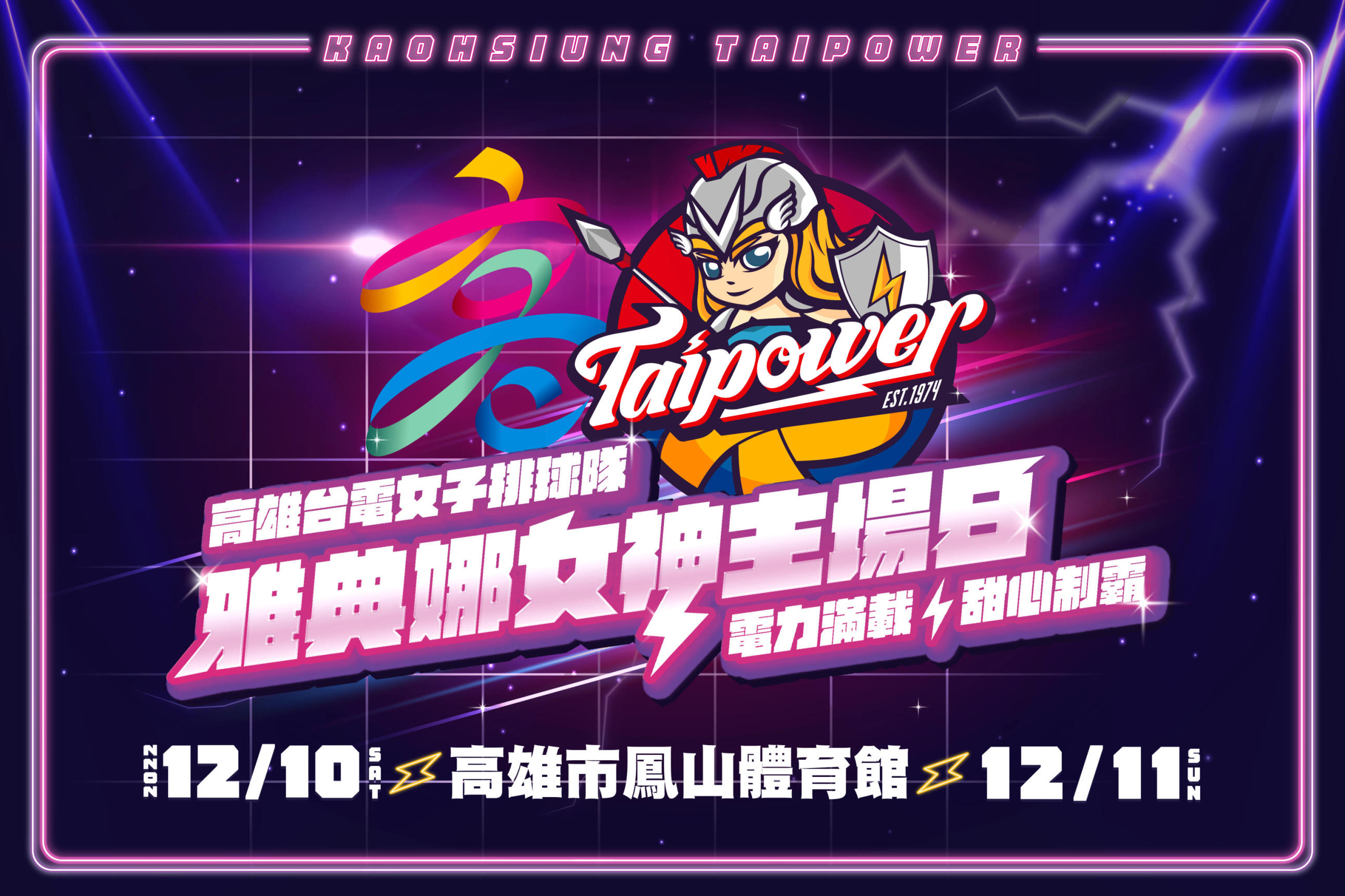 企業18年甲級排球聯賽於今年10月火熱開打,本賽季首次於主場鳳山體育館出賽,將舉行連續兩周的「雅典娜女神主場日」,與市府冠名的高雄台電女子排球隊將於12月10、11日出戰臺北鯨華與愛山林兩支隊伍,12月17、18日出戰新北中纖與愛山林,精采好球不容錯過。