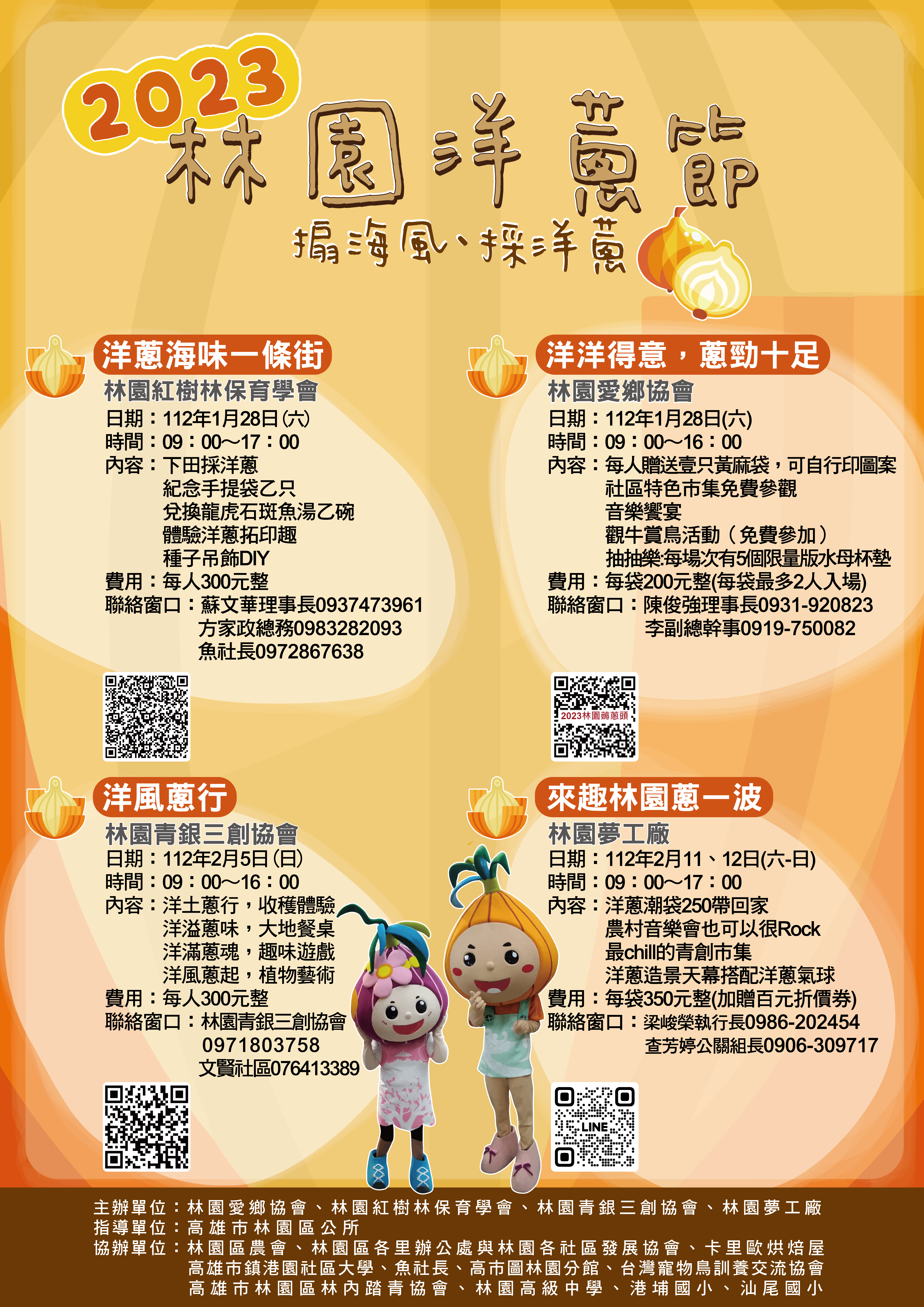 林園為高雄洋蔥的重要產地,每年1-3月進入採收期,今年林園區洋蔥節28日開鑼,啟動ㄎㄠ洋蔥系列活動,推廣林園地區的洋蔥及農漁產業。