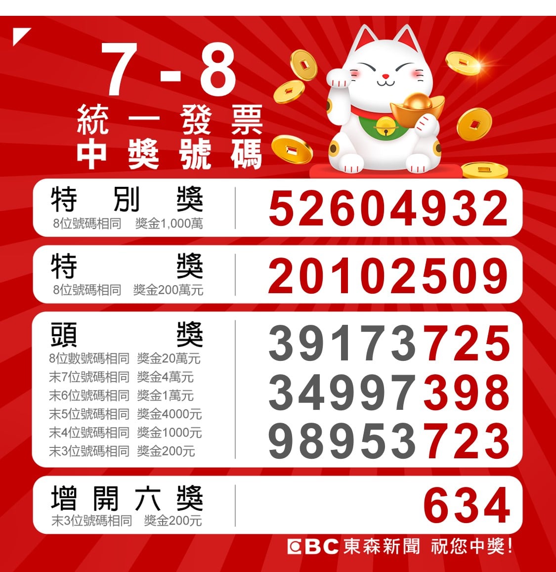 9、10月期統一發票即將於今天下午1時30分開獎,又有更多對中千萬獎金或小確幸機會降臨,在此之前,財政部提醒,還在兌領期限內的7、8月特別獎(1000萬)及特獎(200萬)中獎發票,目前還各有5張及7張未領,記得趕在明年1月5日前完成兌領。