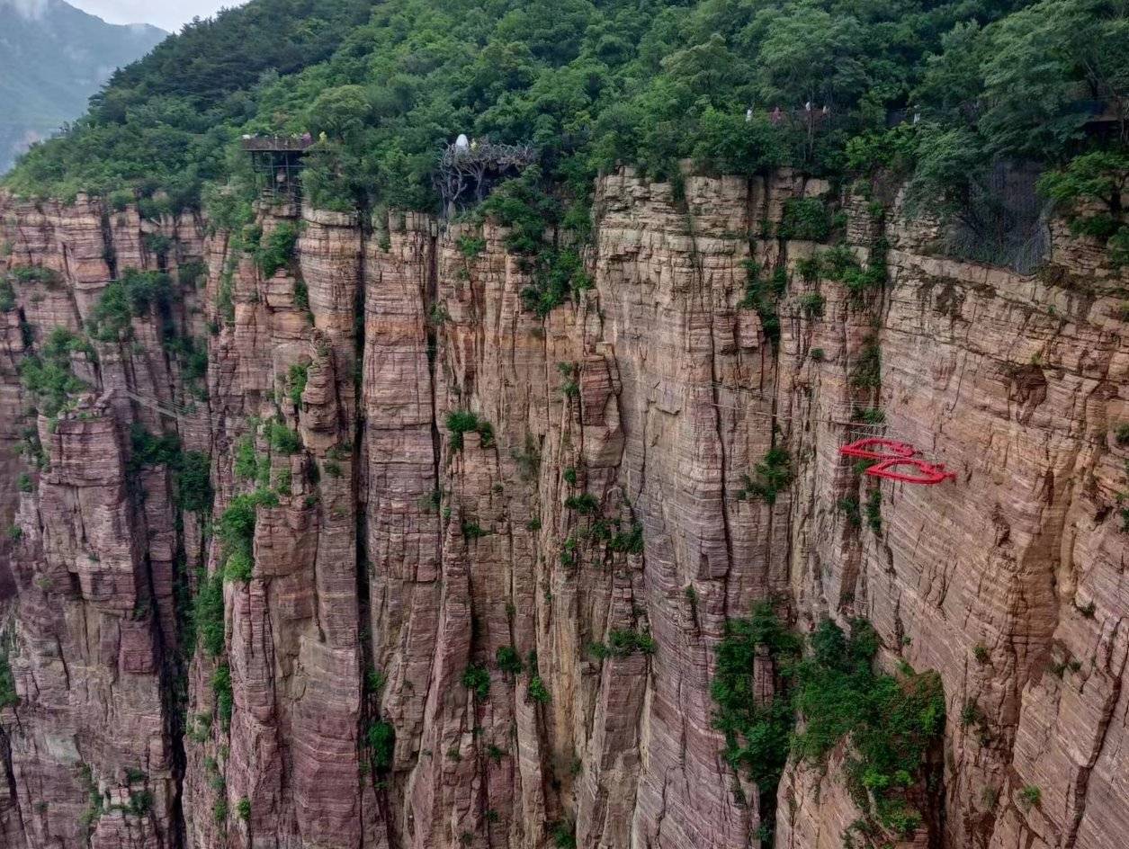 位於崖天下丹崖天路,全長800米的寶泉雲崖攀岩。