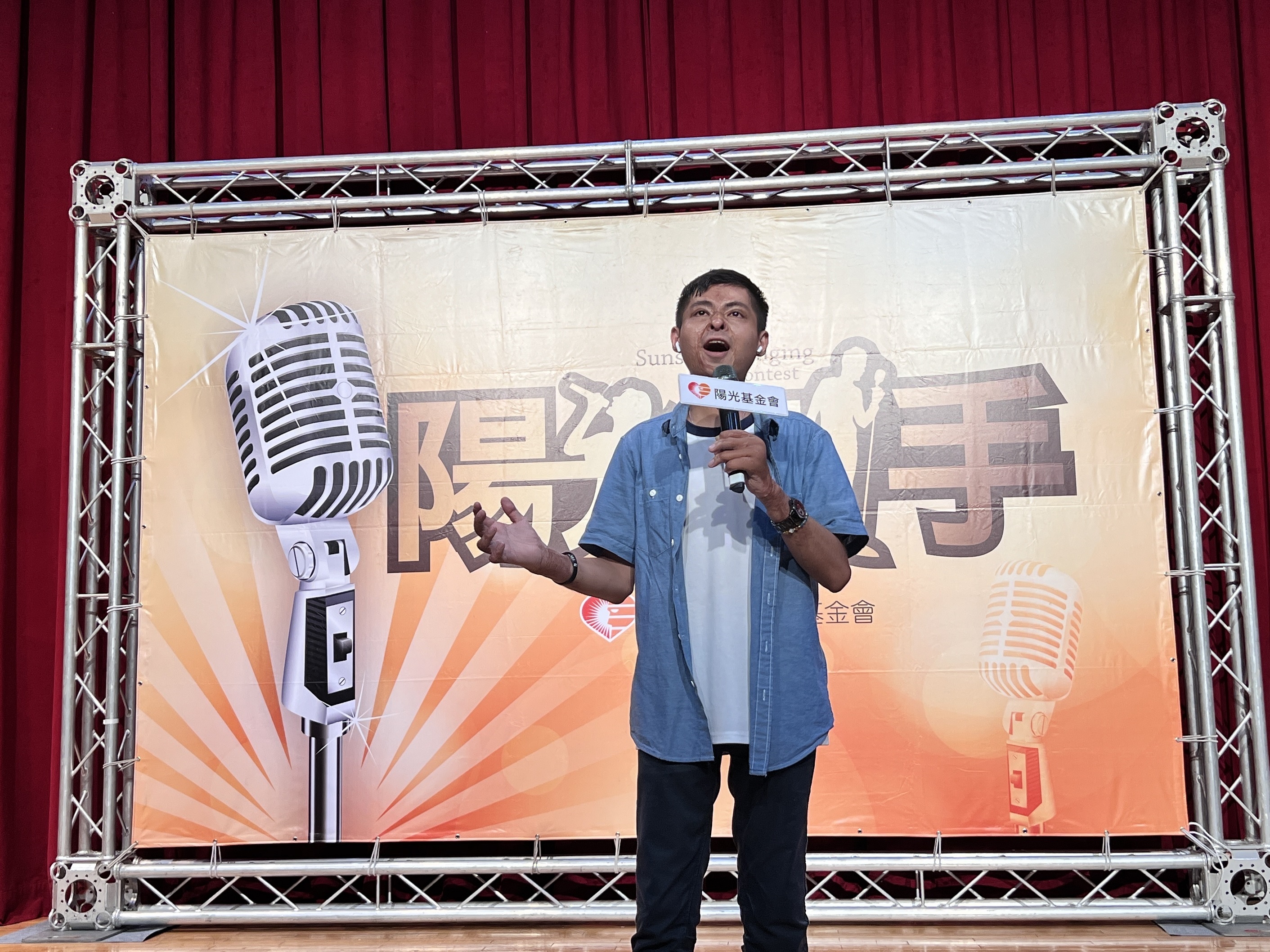 來自北部的陽光歌手周則言,去年獲得十大抗癌鬥士殊榮的他,19年前首次罹患口腔癌四期時,一雙兒女才剛滿3歲,五年前再度復發,術後造成外觀劇變、言語不清,因此與陽光結識,在陽光復健並參加陽光病友團體持續抗癌,「我是全舌切除及下齶骨切除、造成嘴巴閉不起來、造成很多音發不出來,平常人都聽不懂我說什麼。」為幫助自己說話更清楚,他透過參加陽光歌唱班學習發音、反覆練唱,他表示自己以前就愛哼哼唱唱抒發心情,抱著學習的心情參賽,「希望可以聽聽其他癌友如何克服發音、說清楚想說的話。」