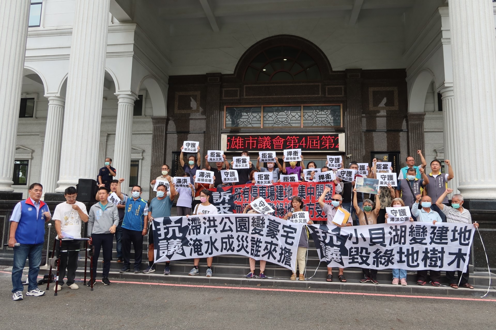 高雄淹水災民里長赴議會向市長陳情 抗議澄清湖開發毀小貝湖滯洪公園