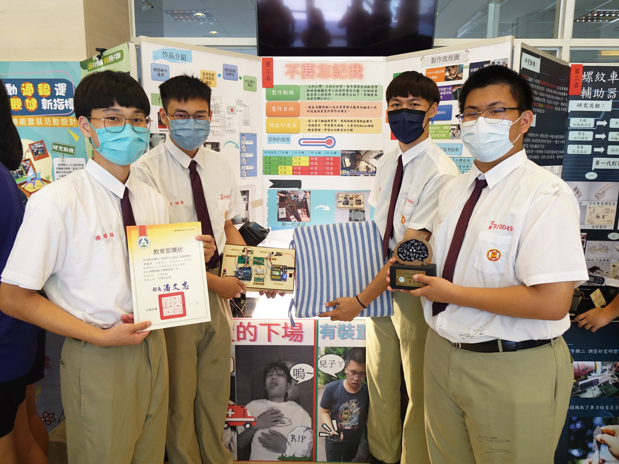 動力機械群專題組汽車科由科主任鄭進全偕吳紹瑜老師,指導姜裕程、楊曜銘、方翊銨、林立棠,以「不要忘記我」奪第三名。