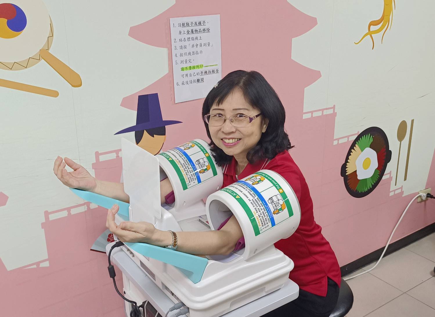 「預防勝於治療!」環境安全衛生中心黃圓婷主任說,配合健康週舉辦「紅字退散作伙來 測量運動一起go」活動,提供教職員工雙臂血壓計和體脂機測量,讓教職員工了解自身心血管健康及肥胖型態等狀況,以利進行自主健康管理,並提供健康諮詢。另,結合按摩椅提供教職員工深度放鬆、降低血壓、降低脈搏頻率及促進新陳代謝。