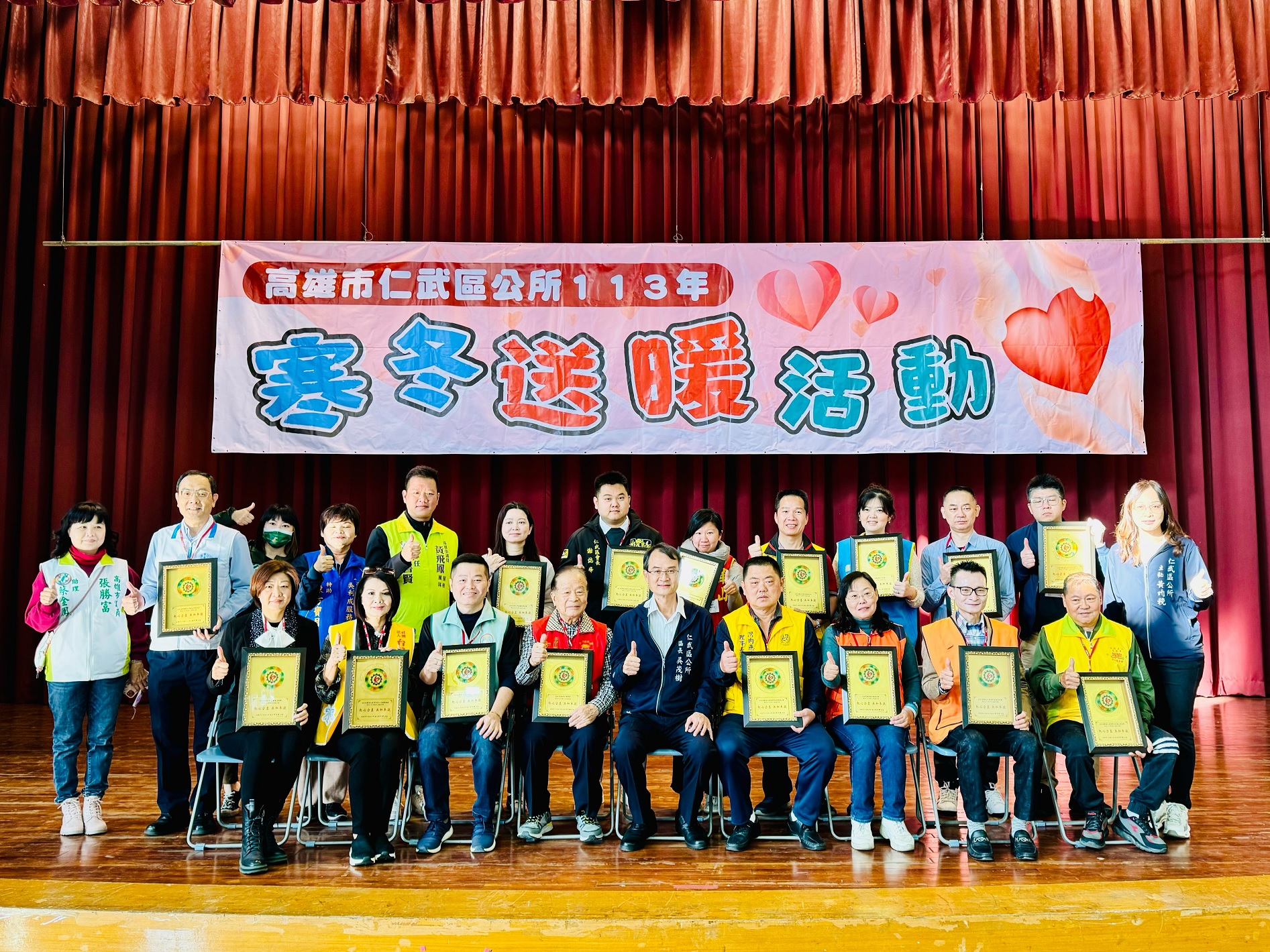 寒流冷嗖嗖卻「凍」不住社會各界的愛心,仁武區公所循例在農曆春節前辦理寒冬送暖活動,集結企業、宗教及慈善團體的愛心,讓區內經濟不力家庭都能感受到社會的關懷,同時也能歡歡喜喜迎新春。
