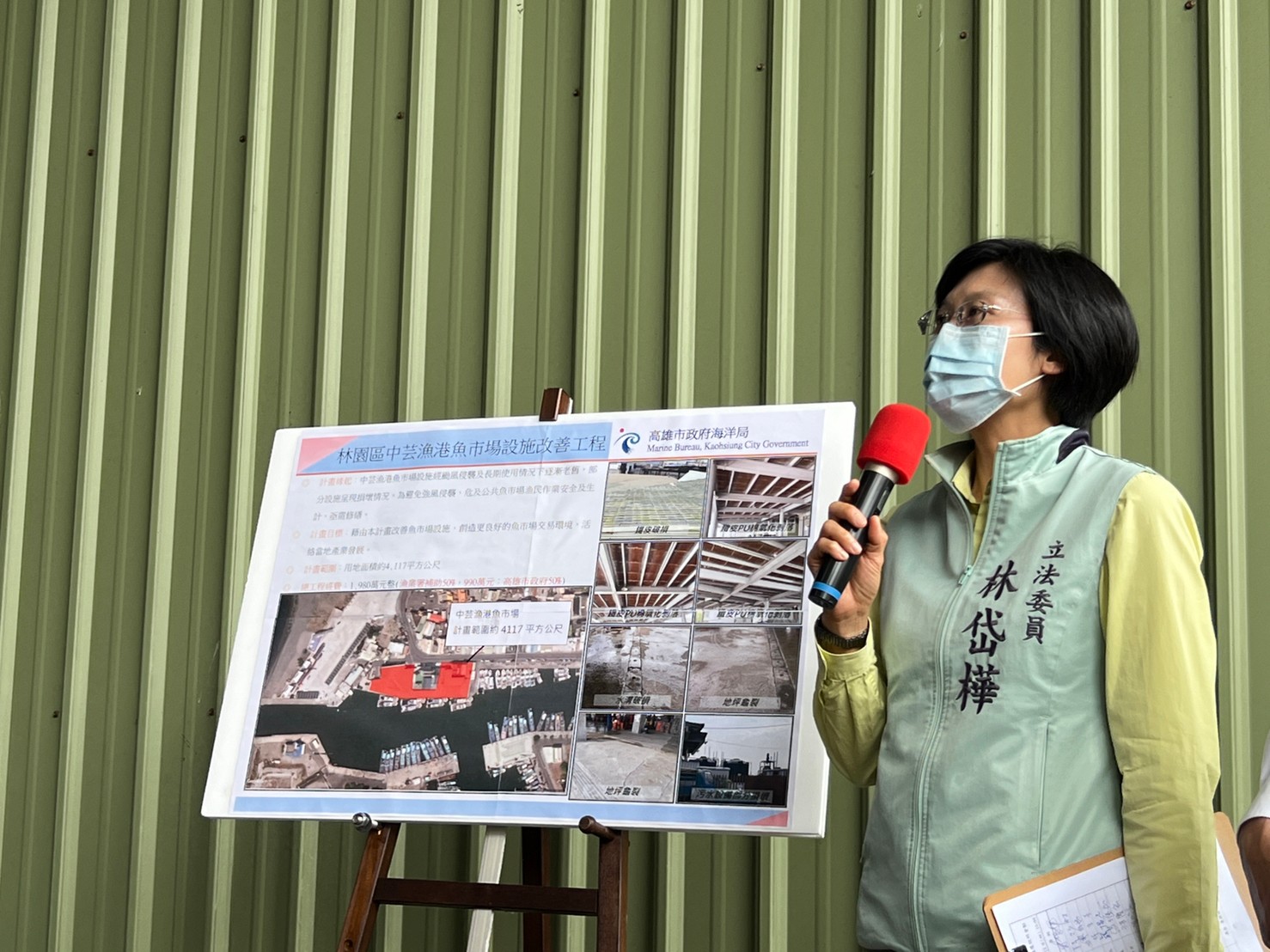 她說,現況魚市場設施年久失修,地坪也破損,同時鋼材鏽蝕、屋頂浪板老舊損壞積水、照明也不足且污水設施也損壞,而且緊鄰魚市場旁的漁會多功能漁民活動中心內側牆面及樓梯間壁癌叢生、頂樓防水層破損造成辦公環境滲水、採光罩老化以及鐵捲門及鋁門窗需汰換等問題存在,嚴重影響漁民拍賣交易環境及洽公民眾之觀感和舒適性。