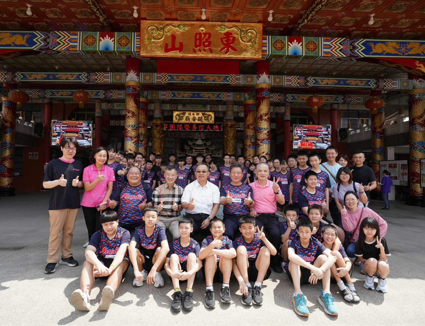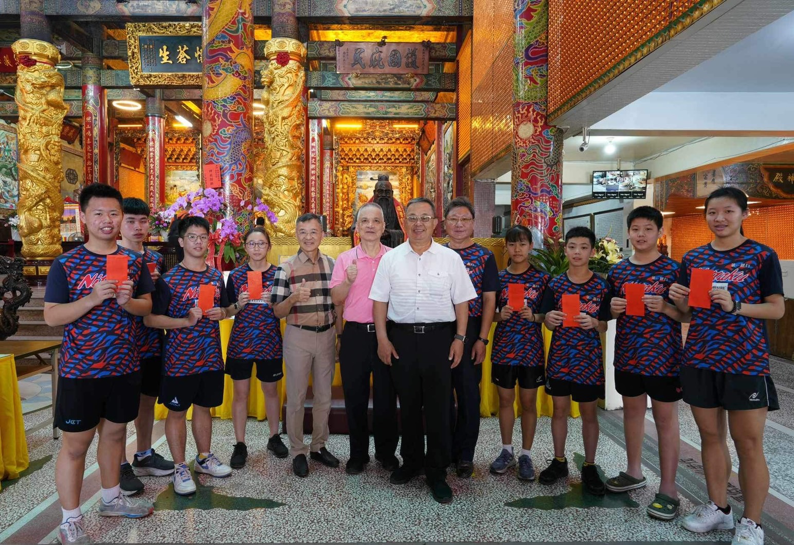 前內政部長余政憲陪福誠中學桌球隊前往東照山關聖帝君祭拜祈求全中運拿到好成績