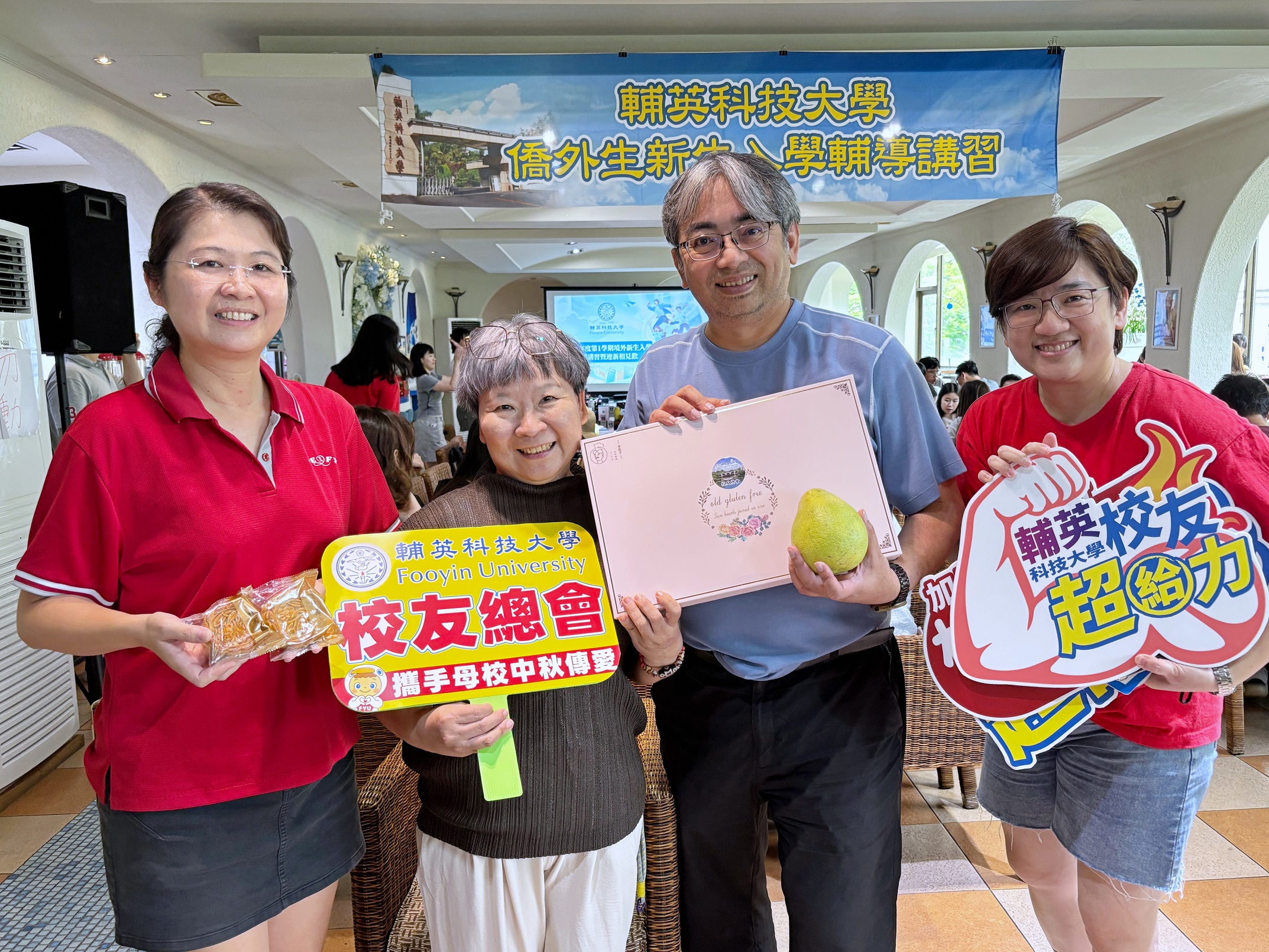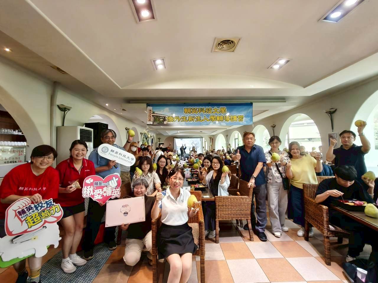 【本報記者陳明成高雄報導】輔英科技大學舉辦「僑外生入學輔導講習暨師生相見歡活動」,迎新現場洋溢溫馨氛圍。校方特別準備柚子與月餅,象徵團圓與祝福,陪伴初來乍到的境外學生共度節慶;校友總會與校友企業也攜手母校,以行動傳愛,展現輔英「家」的溫度與情誼。
