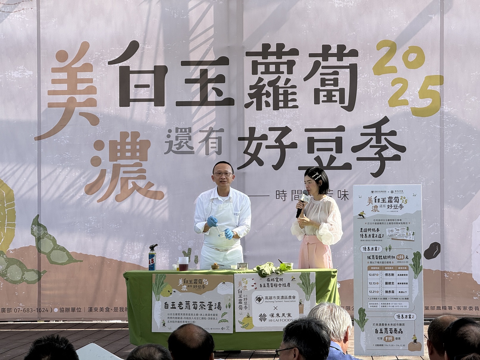 今年美濃農會特別與漢來美食跨界,漢來美食為南部最大餐飲品牌,主廚團隊長年支持在地農業,並多次深入美濃田間尋訪食材。在一次產地參訪中,漢來西餐主廚及採購協理認識了白玉蘿蔔及其延伸加工品,如糖漬老蘿蔔、蘿蔔絲、蘿蔔乾、蜜紅豆餡等,激發將在地食材融入菜單的構想。今年蘿蔔季期間,漢來旗下多間餐飲品牌,包括焰鐵板燒、焰牛排館、上菜片皮鴨專賣店及漢來軒等,將陸續推出以白玉蘿蔔為主題的創意料理,包含白玉蘿蔔鴨架湯、白玉蘿蔔燉牛腩,讓更多消費者在餐桌上感受美濃風土。