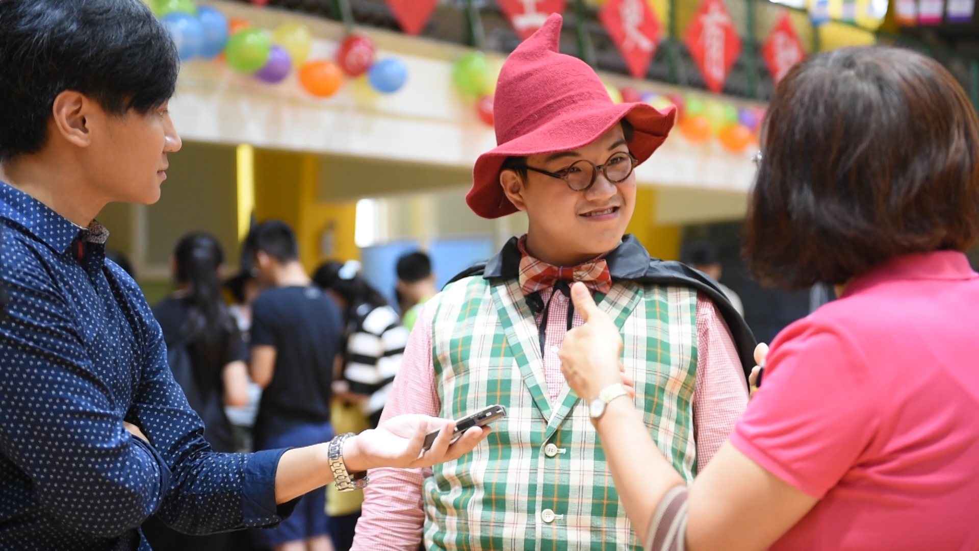 科思創科學舞台劇受訪的聽損演員 陳東亮 (左二)