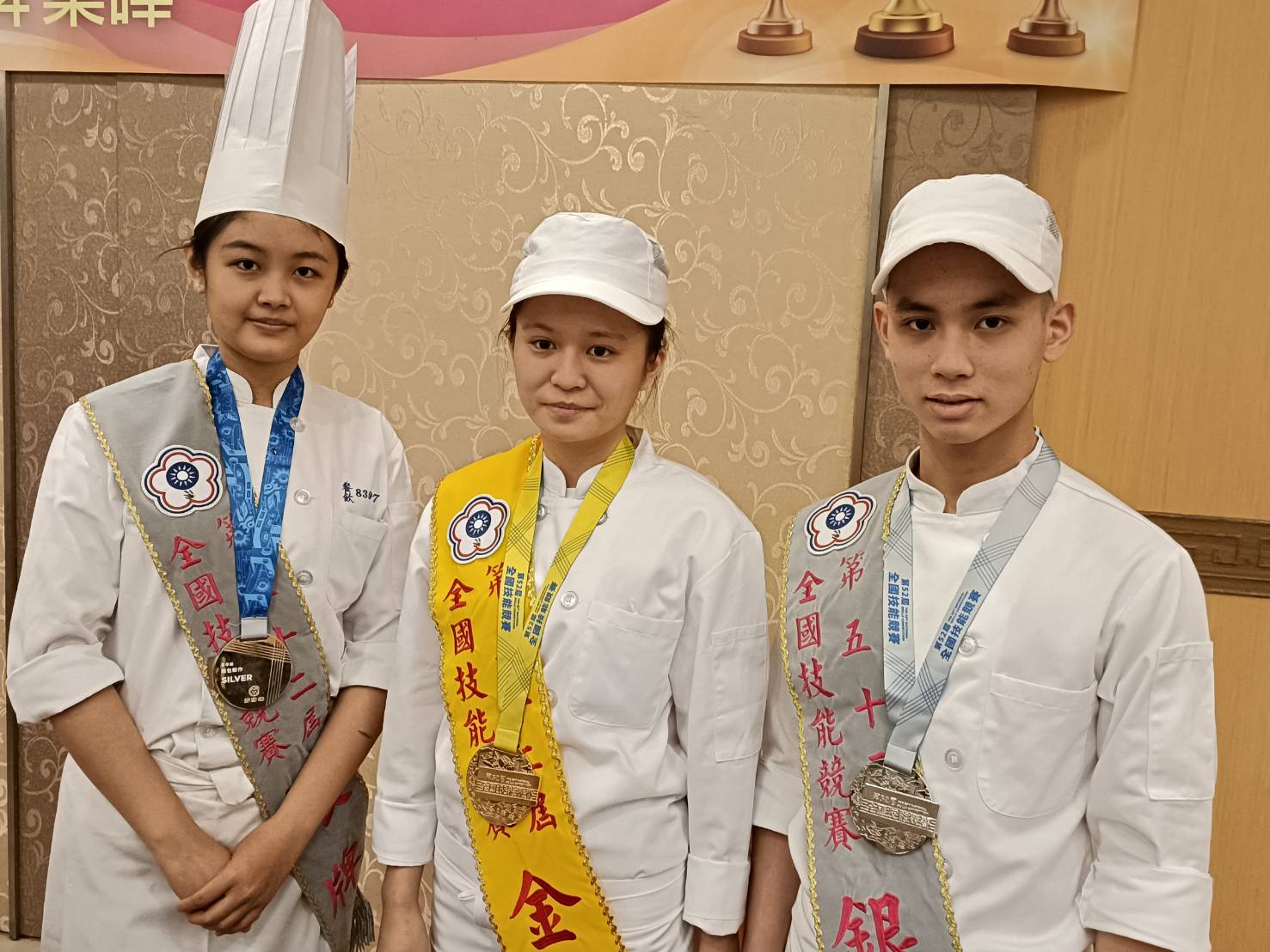 麵包製作銀牌葉曄、 中餐烹飪金牌謝珮禎、銀牌劉峰瑋